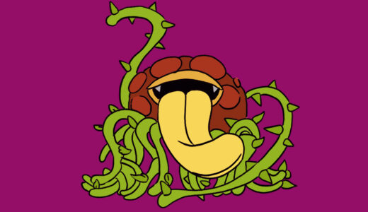 『ドラゴンクエスト』シリーズに登場するデビルプラントは、三本の茎の先端に紫色の食虫植物状の頭部を持つ植物型モンスターである。各頭部は大きな口を開き、鋭い牙を備えている。中央部は緑色の大きな葉が広がり、下部からは赤い根のような触手が多数伸びている。全体は#多頭植物体と#捕食植物構造に整理される。