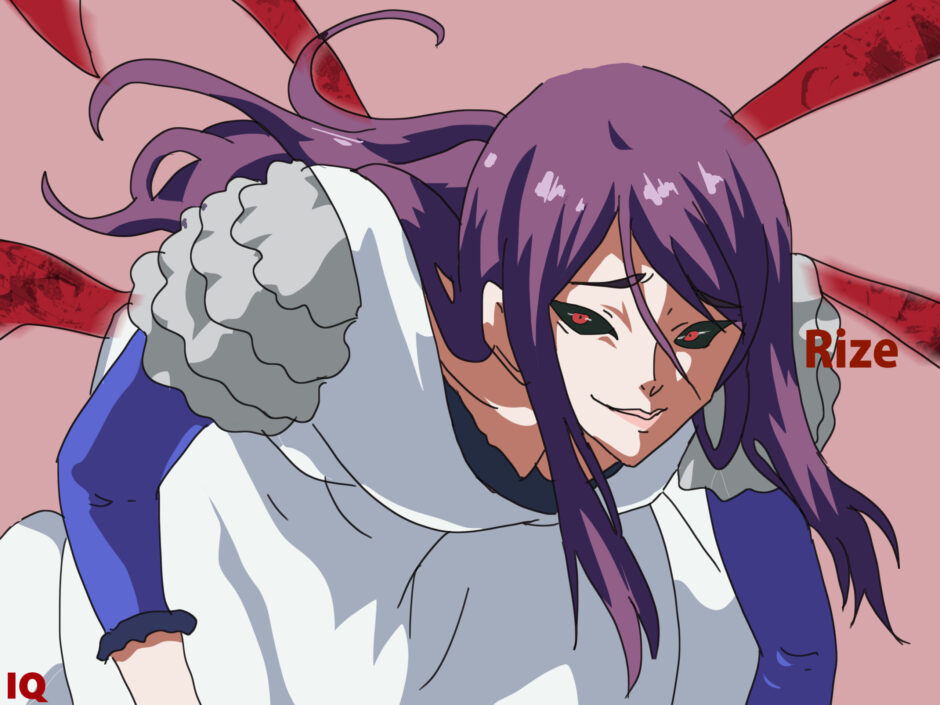 「Rize Kamishiro」という名は、他言語圏では「Rise」や「Lize」と誤記されやすく、固有名詞としての表記統一が重要である。触手状構造は「kagune」として固有語的に扱われるため、翻訳時は注釈を添えたまま原語で残すのが適切。髪色は「violet hair」ではなく「deep purple tone」として記述すると自然な表現となる。