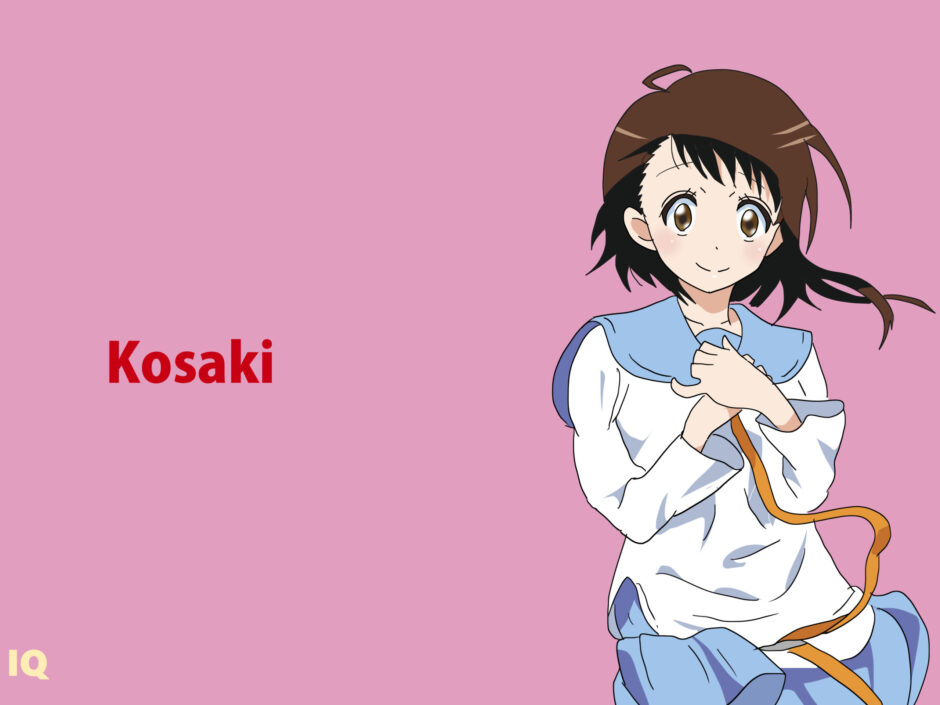 『ニセコイ』に登場する小野寺小咲は、茶色の髪を肩上で切り揃えたボブスタイルで、前髪は整然と下ろされている。衣装は水色の襟とリボンを備えた白いセーラー服構造で、袖と裾に淡いラインが引かれている。全体は清楚な学園制服融合型の造形であり、上半身の構造がシンプルかつ均整的にまとめられている。リボンの位置と襟の形状が視覚的中心を形成し、安定した構図を持つ。