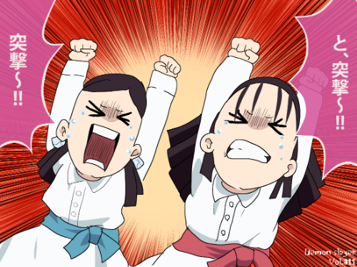 『鬼滅の刃』に登場する寺内きよは、黒髪を肩の位置で切り揃えたボブスタイルにしており、頭部の両側には白い布製の飾りを結び付けている。前髪は中央で割れ、額を大きく見せる形状。衣装は白い上衣に淡色の帯を合わせた和装構造で、袖口が広く取られている。全体としては清楚で簡素な造形に分類され、同作品内の蝶屋敷関係者の衣装体系に属する。