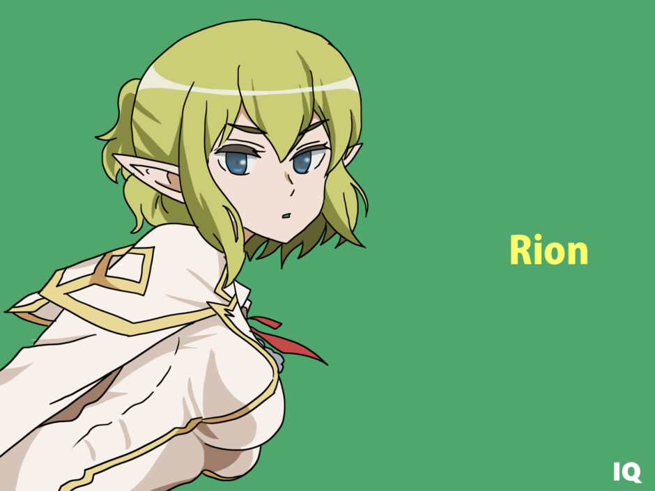 『ダンジョンに出会いを求めるのは間違っているだろうか』に登場するリュー・リオンは、淡い緑色の髪をショートボブに整え、尖った耳を持つエルフ族特有の外見を備えたキャラクターである。衣装は白を基調としたローブに金と赤の装飾をあしらった「魔導戦闘服型」と分類される。肩から胸元にかけて布の重ね構造が見られ、装飾紋が配置されたデザインで、静的ながら機能的な意匠を形成している。視線方向や姿勢の安定感が、冷静さを象徴する構図として設計されている。