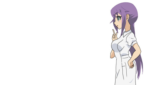 『マンガで分かる心療内科』に登場する官越(かんごし)あすなは、紫色の長髪を後ろでまとめたストレート系ヘア構造を持つ。髪先は軽く内側にカールし、前髪を流す形で整えられている。衣装は白衣を基調としたナース服で、胸部構造に立体感を持たせた「医療制服融合型」。袖口やスカート部には余計な装飾がなく、清潔感を重視した直線的デザインである。身体バランスは中肉中背で、頭身比はやや高めに設定されている。