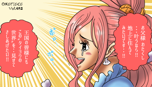 『ONE PIECE』に登場するしらほしは、長いピンク色の髪と大きな尾ひれを持つ人魚の女性キャラクターである。髪は波打つように流れ、頭部に金色の装飾冠をつけており、全体に柔らかな曲線を主体とした造形となっている。衣装は貝殻をモチーフにしたブラと透明感のある布地で構成され、「人魚構造」に分類される。尾ひれは赤みの強い鱗で彩られ、上半身との色彩対比が明確に設計されている。髪のボリュームと尾の広がりが縦方向の視覚バランスを形成している。