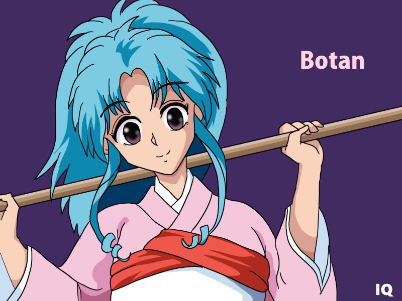 『幽☆遊☆白書』に登場するぼたんは、水色の長髪を高く束ねたポニーテールが特徴のキャラクターである。髪は柔らかい波状構造を持ち、前髪は額に軽くかかるように整えられている。衣装は淡いピンクの着物を基調とし、白の帯を組み合わせた「和装融合型」構造である。袖や裾のラインは広がりを持たせた設計となっており、全体として古典的な衣装構造に軽快さを加えた造形が見られる。