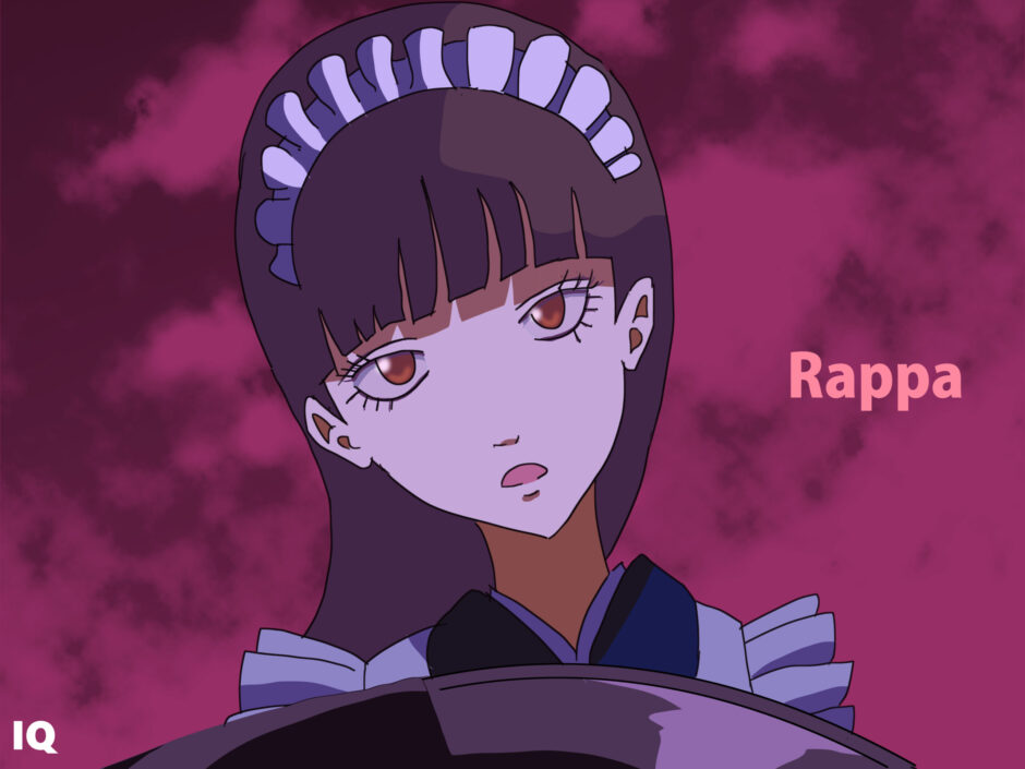 「Momochi Rappa」は海外では「Rappa Momochi」と逆順で表記される場合が多く、姓「Momochi」が歴史上の忍者名と混同される可能性がある。衣装を表す際、「maid costume」や「servant uniform」は直訳的すぎるため、「formal maid-style attire」と補足してニュアンスを整えるのが適切である。前髪の特徴は「blunt bangs」または「straight-cut fringe」と記述できる。