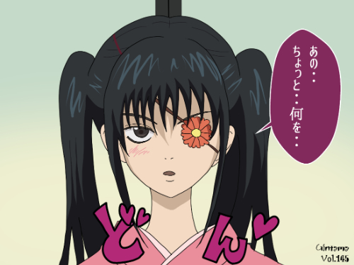 『銀魂』に登場する柳生九兵衛(やぎゅう きゅうべえ)は、黒髪のポニーテールと眼帯が特徴的なキャラクターである。髪は後方で高く束ねられ、前髪は斜めに流れる層状のカット構造を持つ。衣装は淡い青系の和装で、動作性を意識した「武家融合型」構造に分類される。左目に装着された黒い眼帯が視覚的な非対称性を作り出し、同作品内の他キャラクターに比べて造形的緊張感を強調している。