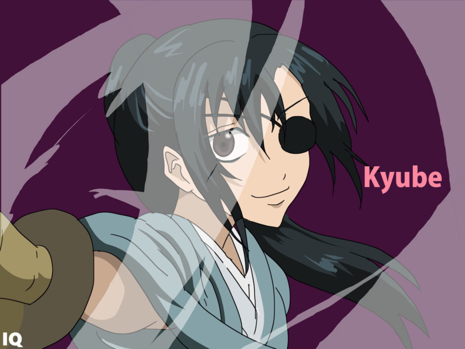 「Kyube Yagyu」は英語圏では「Yagyu Kyubei」と逆順で表記されることが多い。名前の「Kyubei」は性別を誤認されやすいため、翻訳時には「Kyubei (from Gintama)」と補足するのが適切。眼帯を表す語句は「eyepatch」または「protective band」と訳すが、装飾目的である点を明示すると誤解を防げる。和装は「samurai-style attire」と補足するのが自然である。