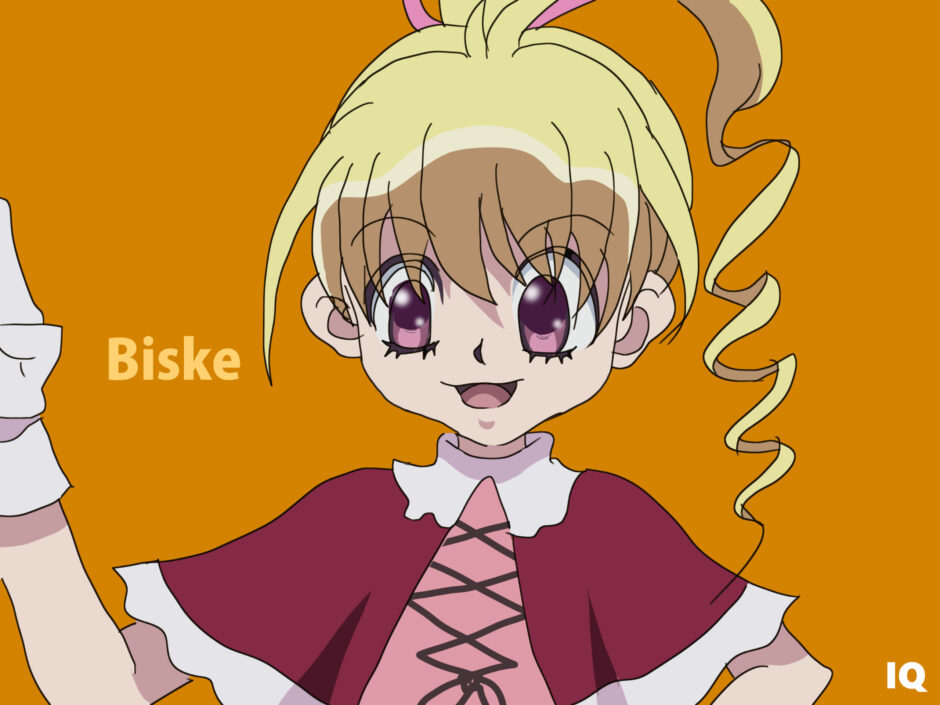「Biscuit Krueger」は英語圏で「Bisky」と省略されることがあるが、正式名表記を明示することが望ましい。衣装を説明する際は「frilled dress with twin pigtails hairstyle」とすることで、特徴的な外観を正確に伝えられる。髪型の「twin curls」または「twin spiral ponytails」という補足表現も適切である。
