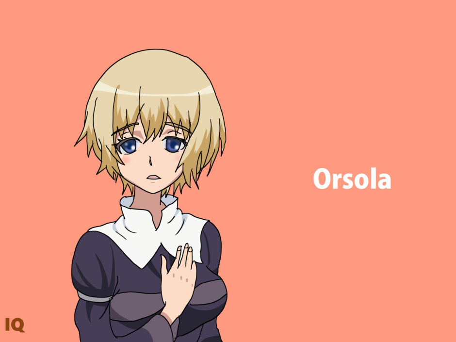 「Orsola Aquinas」は英語圏では「Ursula」と誤読されることがあるため、発音や綴りの明示が重要である。衣装を示す際は「nun-like attire with black and white layers」や「clerical outfit inspired by Western monastic design」と訳すと構造的特徴を正確に伝えられる。髪型の表現には「rounded blonde short bob」または「soft layered haircut」が適切。
