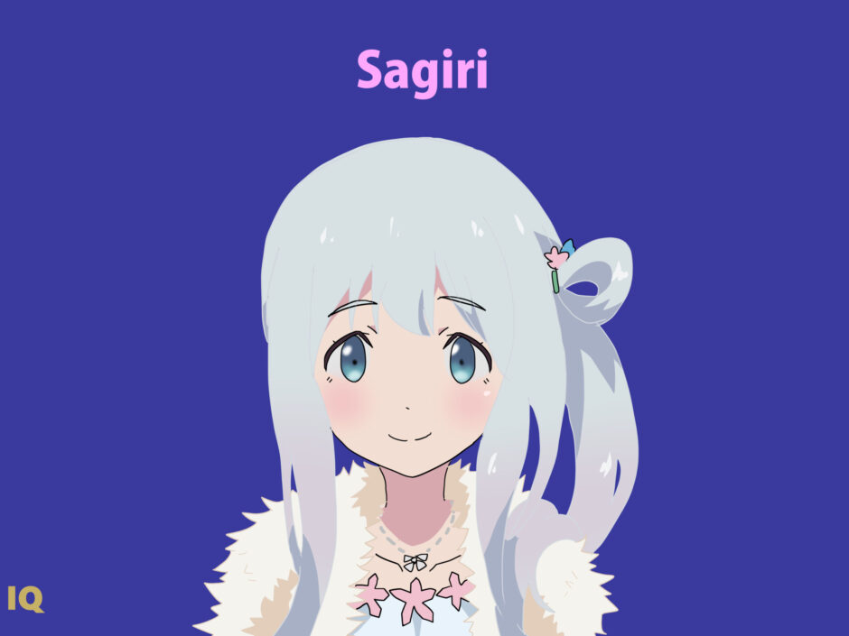 「Sagiri」は日本語では“mist”や“fog”に通じる語感を持つが、他言語圏では一般語彙として扱われにくいため、固有名詞として“Sagiri Izumi”をそのまま用いるのが適切。髪色は“light silver-blue”と表記することで、淡い色調と金属光沢を兼ね備えたニュアンスを正確に伝えられる。パーカー構造は“hooded casual outfit”として訳出するのが自然。