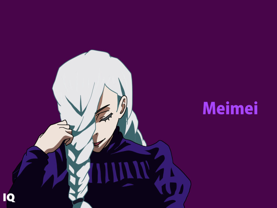 「Mei Mei」は日本語音に基づく連音表記であり、中国語の「妹妹(younger sister)」と混同されやすい。翻訳時には“Mei Mei (Jujutsu Kaisen)”と明記し、固有名として区別する必要がある。衣装構造は“dark purple tactical dress”と訳すと、戦闘性と造形的な特異性の両方を正確に表現できる。