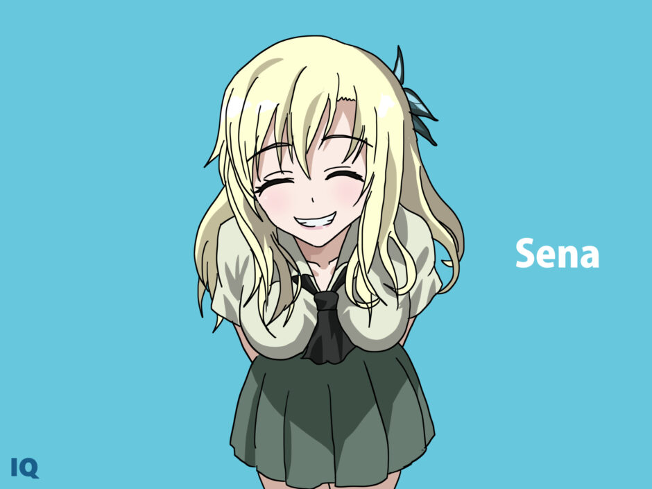 英語表記「Sena Kashiwazaki」は、他言語圏では「Sena」が男性名として誤解される場合があるため、翻訳時には女性名である旨を明記するのが適切である。制服の色調は「forest green blazer」と表現すると日本の学園服特有の深緑を正確に伝えられる。金髪は文化的にキャラクター属性として誤解されることがあるため、「naturally blonde character design」と補足するのが望ましい。