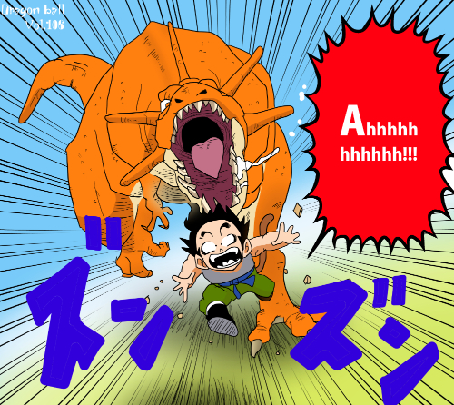 『ドラゴンボール』に登場する孫悟飯は、小柄な体格と大きく広がる黒髪が特徴で、毛先が複数方向へ跳ねる幼年期特有のシルエットが確認できる。上半身は裸で、腕や膝に擦り傷のような赤い汚れが付着しており、下半身は青系の短パンを着用している。足元は素足で、全体として簡素な衣服構造となっている。シリーズ他キャラと比較すると、幼年体型と髪型の特徴から「幼年人物造形型」に分類できる。