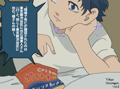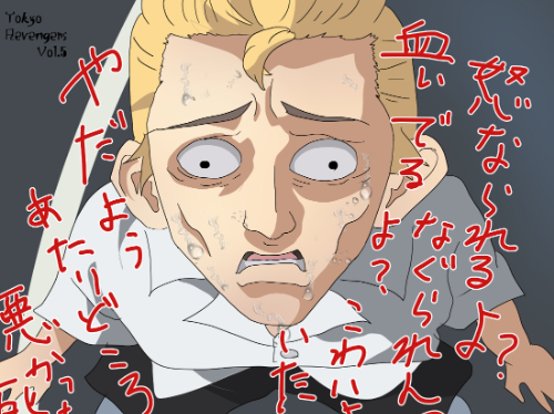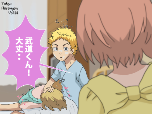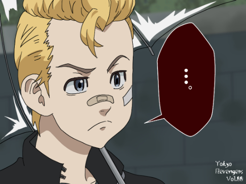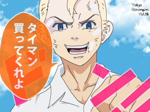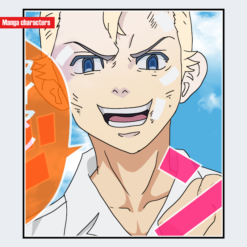 『東京リベンジャーズ』に登場する花垣武道は、短く整えられた金髪に、前頭部から額にかけて滑らかに流れる緩いカールが特徴である。側頭部から後頭部にかけては髪がタイトにまとめられ、頭部の丸みが強調される構造になっている。眉や目の形は細い線で簡潔に描かれ、顔の中心部の情報量が抑えられた造形が採用されている。衣装は白いシャツのみが可視で、襟元が大きく開いた形で簡略化されており、髪型のシルエットが主役となる「髪形主体型」に分類できる。同作のマイキーより短く、ドラケンより装飾性の低い髪構造で、シンプル寄りのバランスが取られている。