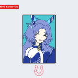『ウマ娘 プリティーダービー(2018年)』に登場するゴドルフィンバルブは、紫がかった青色の髪を長く伸ばし、片側を束ねた柔らかなウェーブが特徴となっている。頭頂からは馬耳が伸び、青と白のリボンで飾られている。衣装は青と白を基調にしたデザインで、首元には金色の馬蹄を模した装飾が確認できる。肩口には濃紺の布地が重ねられ、全体に流線的で統一感のあるスタイルを持つ。これらは「制服融合型」「擬獣化構造」に該当し、同作特有の人型と獣的特徴の組み合わせが示されている。