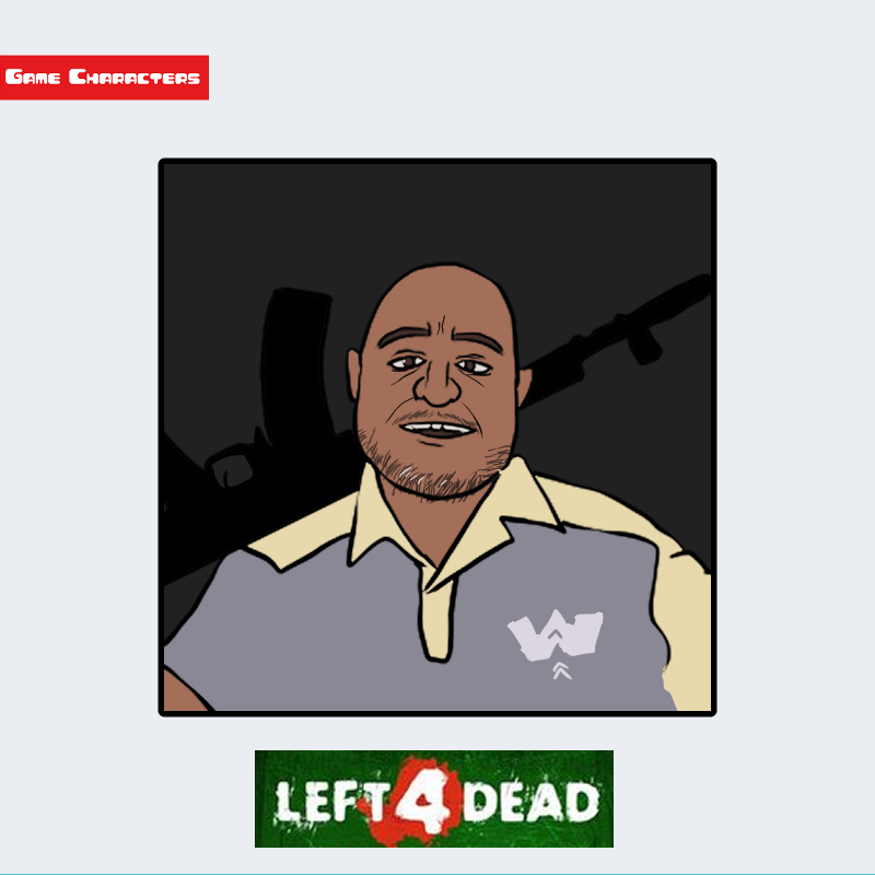 『Left 4 Dead 2(2009年)』に登場するコーチは、頭髪を剃り上げた姿と大柄な体格を特徴としている。衣装は淡い黄色のシャツに紫色のポロシャツを重ね、胸元には「W」のロゴが描かれている。首元はオープンカラーで、カジュアルかつ運動指導者を思わせる服装構成になっている。顔立ちはひげを整えた風貌で、同作の若いキャラクターと比較すると年長者らしい外観を持つ。これらは「現代装束型」「スポーツ風構造」に分類される。