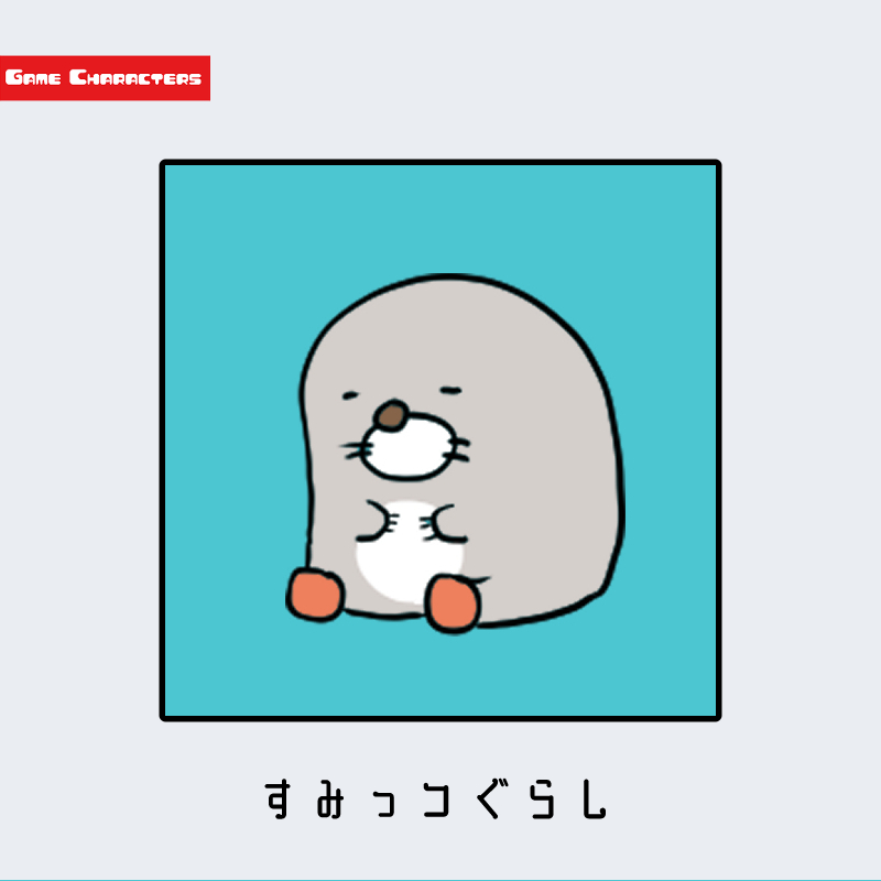 『すみっコぐらし(2012年)』に登場する「もぐら」は、丸みを帯びた灰色の体に、白い口元と鼻が目立つデザインを持つキャラクターである。目は小さく、点状に配置され、シンプルながらも視認しやすい構造となっている。手足は短く、特に前足は橙色で小さな丸い形状をしており、爪を意識した造形が見られる。全体のシルエットは円筒形に近く、頭部と胴体が一体化しているのが特徴である。装飾的要素は少なく、造形的に「擬獣化構造」として分類される。同作の「とかげ」や「ぺんぎん?」と比較すると、地中性動物をモチーフにした特徴が強い。