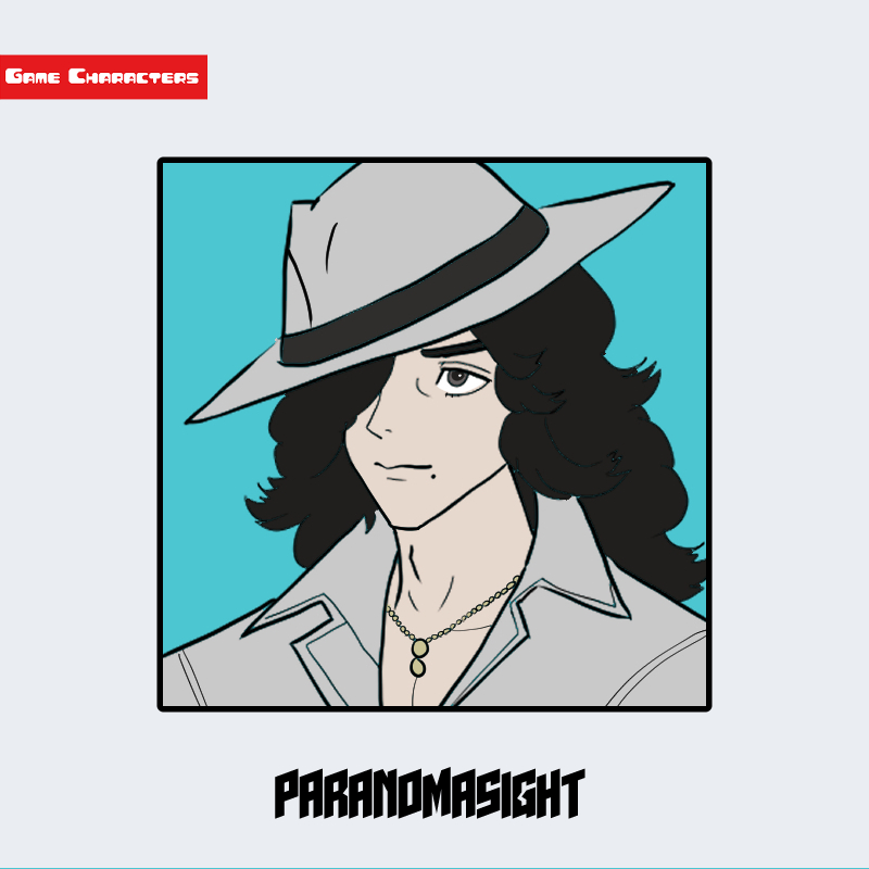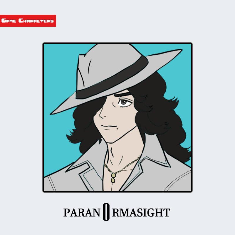 『パラノマサイト』に登場する樫利飛太は、長めの黒髪を波打つように広げた髪型を持ち、頭にはつばの広いハットを被っている。衣装は淡色のシャツで、胸元を開けてネックレスを着用しており、装飾的要素が強調されている。シャツの縁取りには細いラインが入り、視覚的な輪郭を補強している点も特徴である。この構造は「私服型」と分類され、他の制服融合型キャラクターとの差異が明確に示されている。