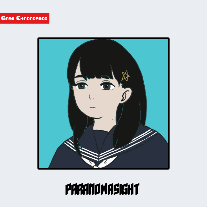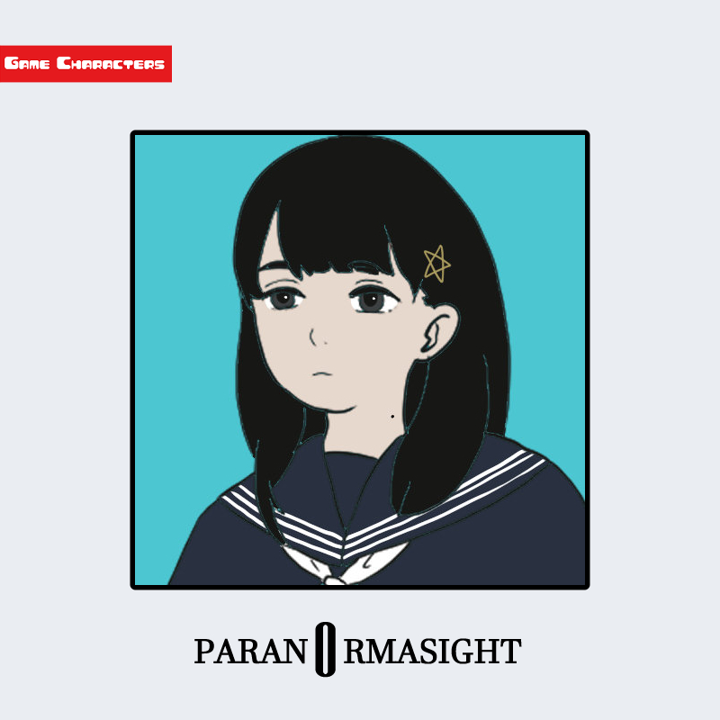 『パラノマサイト』に登場する黒鈴ミラは、長めの黒髪を左右に下ろし、前髪を眉の高さで整えた髪型をしている。髪には星形のヘアピンが装飾として付けられており、視覚的なアクセントとなっている。衣装は紺色のセーラー服で、襟や肩部分に白いラインが施されている点が特徴的である。全体的に「制服融合型」の典型例として整理でき、同作品内の私服型キャラクターとの差異が明確に示されている。