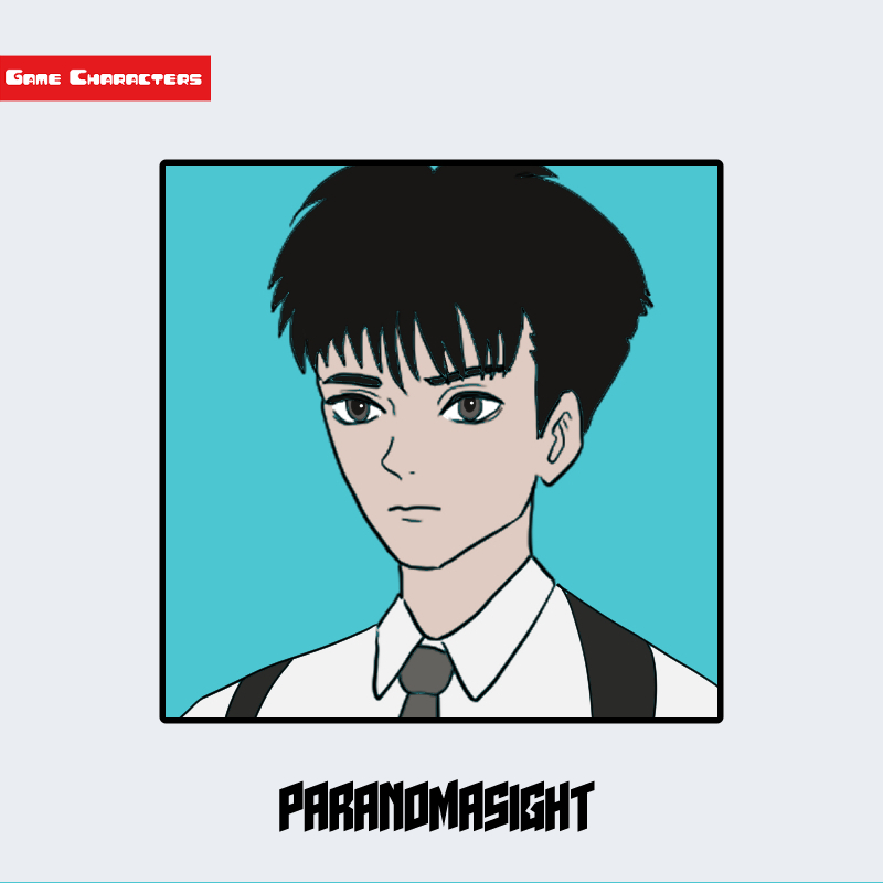『パラノマサイト』に登場する襟尾純は、黒髪を短く整えたストレートな髪型を持ち、前髪は額にかかるように下ろされている。目元は鋭く描かれており、直線的な輪郭と合わせて端正な造形となっている。衣装は白いワイシャツにネクタイを合わせ、上から黒いベストを着用している点が特徴で、典型的な制服構造として整理できる。同作品内での「私服型」のキャラと比較すると、より制度的な枠組みを示す衣装構造に位置づけられる。