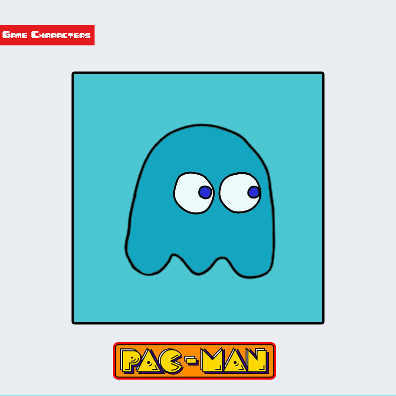 『パックマン(1980)』に登場するキマグレ・アオスケは、水色を基調としたゴースト型キャラクターである。身体は布状の一体構造で、下部が波状に切れ込みを持つシルエットで描かれている。大きな白目に青い瞳が配置され、視線の動きによって表情的な変化が生じる。装飾要素や衣装は一切なく、単色の外装によってシンプルな視覚特徴を持つ。構造分類としては「擬霊体型」に属し、ブリンキーやピンキーと同系列のゴースト群に含まれる。