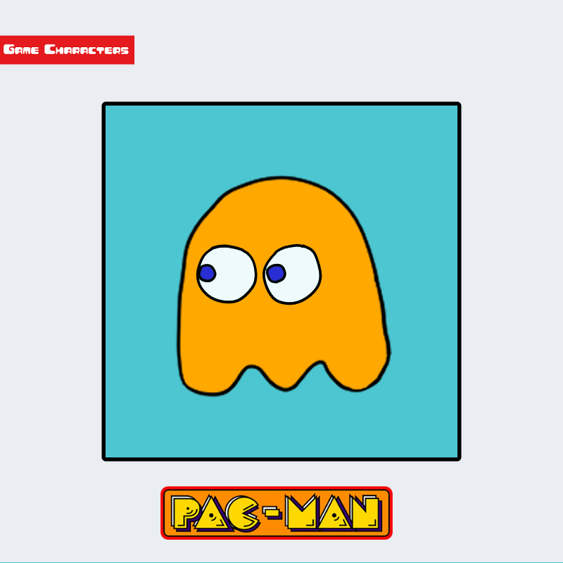 『パックマン(1980)』に登場するブリンキーは、赤色を基調としたゴースト型キャラクターである。身体は布のような一体構造で、下部が波状に分かれている。大きな白目に青い瞳が配置され、視線の向きで表情的な変化が強調される。別デザインとして橙色のバリエーションが存在し、こちらは半眼状のまぶたと口の線が加わり、異なる雰囲気を示している。構造分類としては「擬霊体型」に該当し、シリーズの中核をなすゴースト群の代表的造形を持つ。