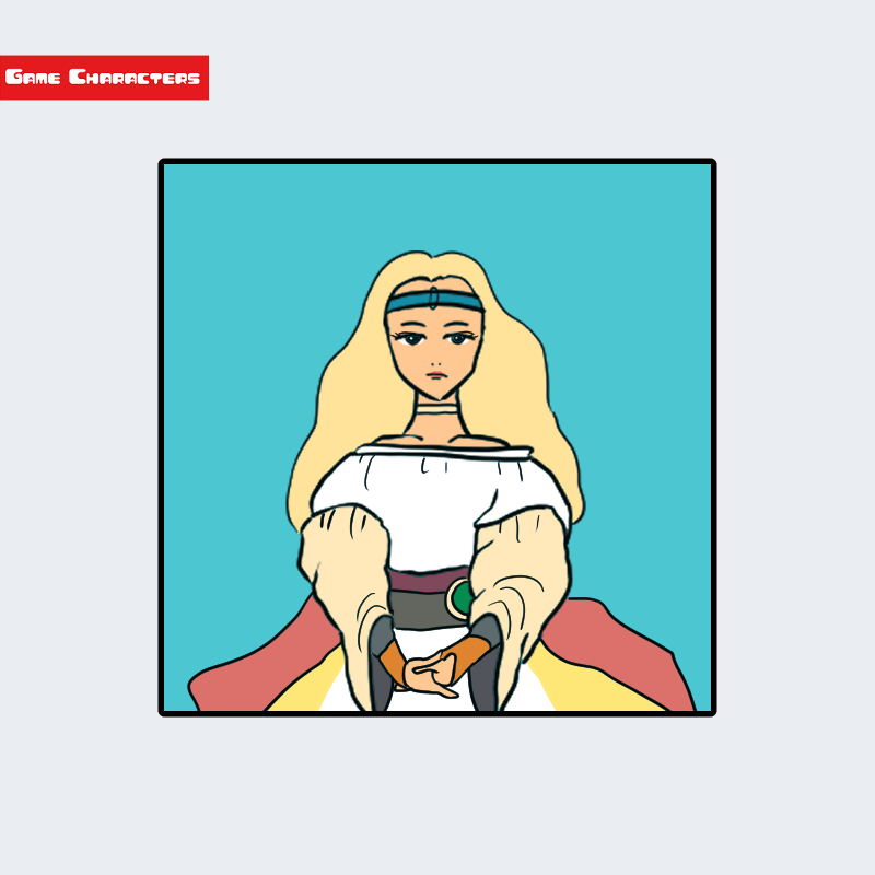 『大魔界村(1988)』に登場するプリンセスは、長い金髪を持ち白いドレスを着用した人型キャラクターである。髪は後方に広がり、額には細い青色のカチューシャ状の装飾がある。上半身はオフショルダーの白い衣装で、袖口や腰部には赤と茶の色合いが加えられている。腰元は広がったスカートで構成され、全体的に王族らしいシルエットを形成している。構造分類としては「人間女性型」に該当し、同作に登場する怪物型キャラクターとの対比で人間側の象徴として位置づけられている。
