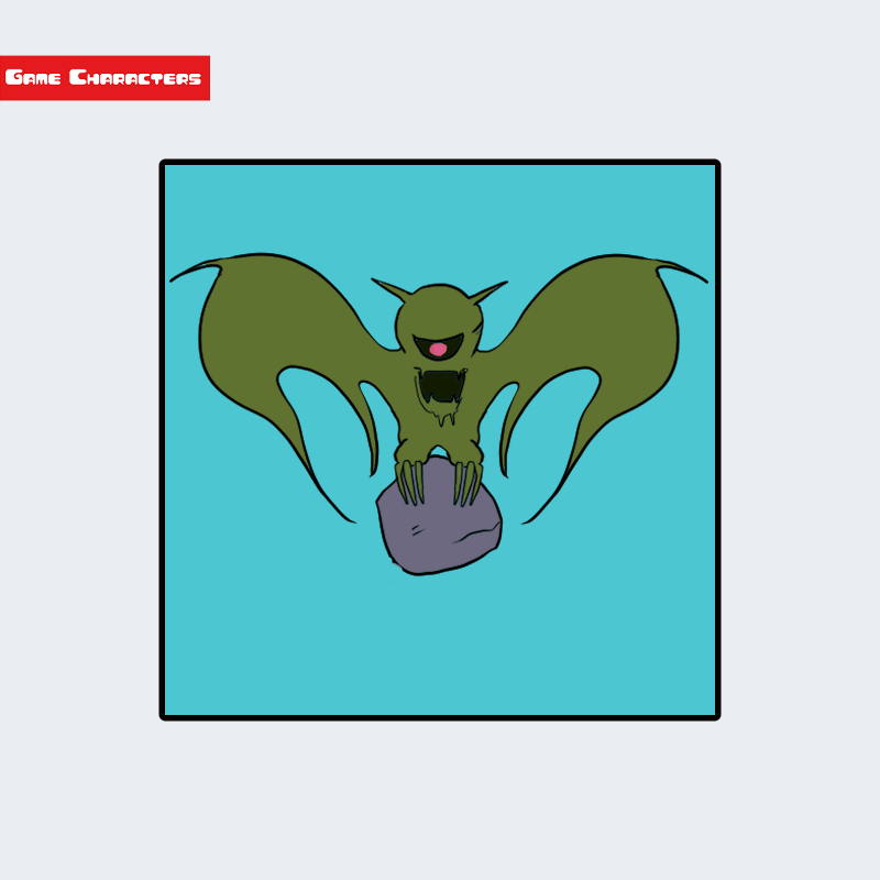 「Flying Goblin」という名称は直訳すると「空飛ぶゴブリン」となるが、他作品における一般的なゴブリン像(小鬼や妖精的存在)と混同されやすい。本作ではコウモリ的な意匠が強いことから、“bat-winged goblin”などと補足するのが望ましい。また、掴んでいる岩は“rock weapon”と解釈されやすいため、単なる足場や持ち物であることを明記すると誤解を避けられる。