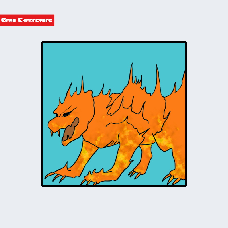 「Cerberus」はギリシャ神話に登場する地獄の番犬であり、翻訳時に多頭犬としての伝承と混同されやすい。本作では単頭の炎獣としてデザインされているため、“Flame Cerberus”や“fire-beast Cerberus”と補足するのが適切である。また、炎を纏った毛並みは“flaming fur”や“fire-cloaked body”と表現すると正確性が増す。