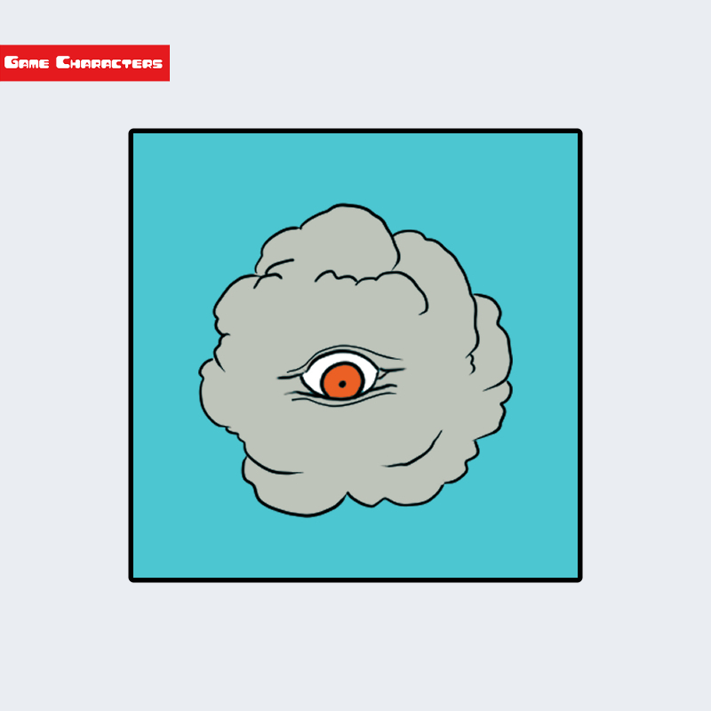 『大魔界村(1988)』に登場するガストは、雲状の身体に単眼を備えた霊体型モンスターである。身体は灰色の雲の塊のように描かれ、その中央に赤い瞳を持つ大きな目が配置されている。四肢や物理的な身体構造はなく、曖昧に揺らめく外郭で形成されている。浮遊する姿勢をとるため、他の人型や獣型の敵キャラクターと比べて非物質的な存在感が強い。構造分類としては「雲霊体型」に該当する。