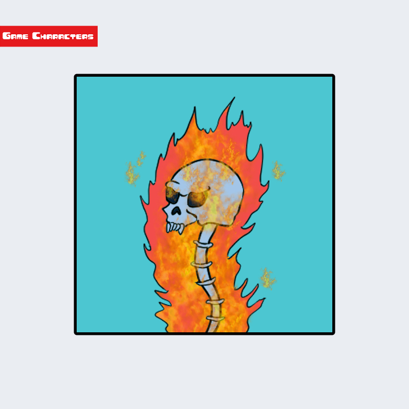 『超魔界村(1991)』に登場するスカルフラワーは、炎に包まれた頭蓋骨と背骨で構成されたアンデッド型モンスターである。頭部は白骨化したドクロで、黒い眼窩と牙が強調されている。首から下は連結した背骨状の骨が垂れ下がり、その全体が燃え盛る炎に覆われている。肉体は存在せず、炎と骨だけで構築された異形の姿が特徴である。構造分類としては「炎骨融合型」に該当し、他のゾンビ系モンスターと比べてより抽象的かつ象徴的なデザインを持つ。