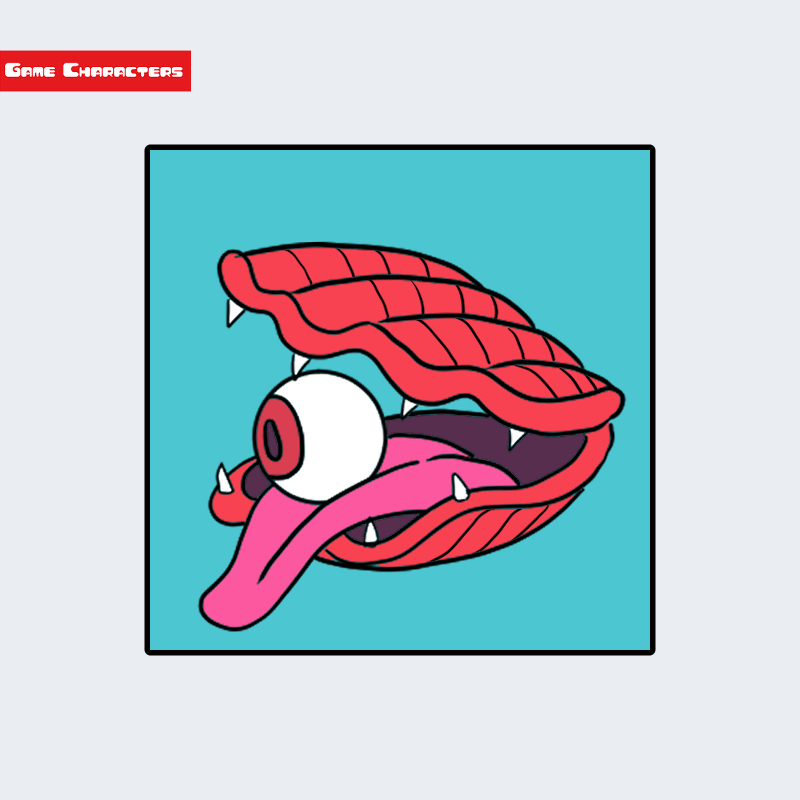 『超魔界村(1991)』に登場するシェールは、巨大な二枚貝をベースとしたモンスターである。上殻と下殻はいずれも赤みを帯びた硬質構造で、内部からは長い舌が伸び出している。舌の上には大きな単眼が配置され、眼球は白地に赤い瞳孔が強調されている。貝殻の縁には牙状の突起があり、捕食的な意匠が際立つ。構造分類としては「貝殻擬獣化構造」に該当し、他の水棲系モンスターと比べて異様な人外感を備えている。