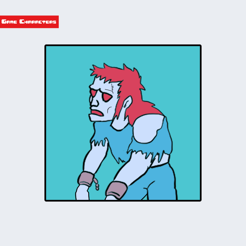 『超魔界村(1991)』に登場するゾンビは、くすんだ青白い肌と赤い髪を持つアンデッド型キャラクターである。顔には落ちくぼんだ目と赤い瞳が描かれ、口元は不気味に歪んでいる。衣装は破れた青色の布切れで構成され、肩や腕、脚部からは素肌が露出している。両手には鉄輪のような装飾が付けられ、全体として生者と異なる不完全な体格が表現されている。構造分類としては「アンデッド人型構造」に該当し、同作品の獣型モンスターとは対照的な人間崩壊のデザインである。
