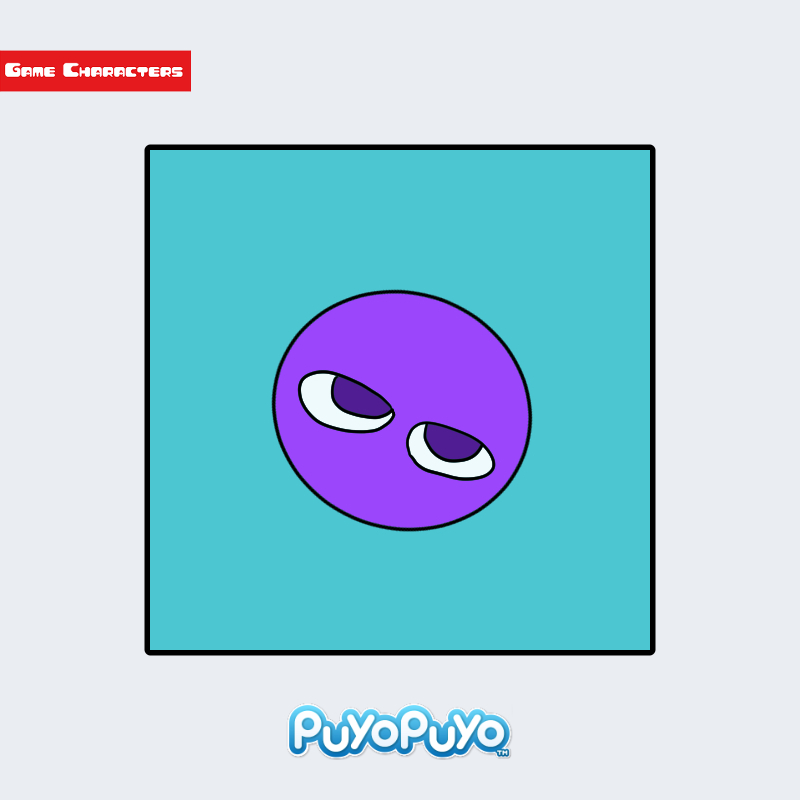 『ぷよぷよシリーズ』に登場するむらさきぷよは、紫色の球体をしたスライム状のキャラクターである。形状は他のぷよと同様に滑らかな球形で、上部がわずかにとがったしずく型のシルエットを持つ。目は白地に黒い瞳が描かれ、やや斜めの角度で配置されており、独特の表情を形成している。衣装や装飾は存在せず、全身が単一色で構成される「単色液状生命構造」に分類される。シリーズ内では他色ぷよと並ぶ基本個体の一つである。