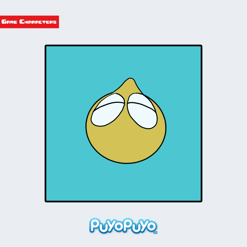 『ぷよぷよシリーズ』に登場するきいろぷよは、黄色を基調とした球体状のキャラクターである。上部がわずかに尖ったしずく型のフォルムを持ち、滑らかな質感で構成されている。目は白地に黒い瞳で、位置はやや寄り気味に配置され、微妙な角度で表情を形成している。口や四肢は存在せず、最小限の要素で感情表現を行うデザインである。全体として「単色液状生命構造」に分類され、シリーズを象徴する基本的な“ぷよ”の一種である。