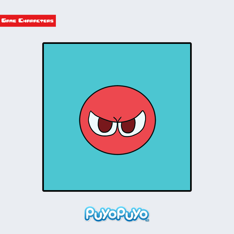 『ぷよぷよシリーズ』に登場するあかぷよは、赤い球体の姿をしたスライム状キャラクターである。全体は円形で構成され、表面は滑らかで光沢感を持つ。中央には白い目が描かれ、黒い瞳と眉のような線によって強い表情が形成されている。口はなく、視覚的な感情表現は目の形状のみで伝えられている。衣装や装飾は存在せず、純粋なシルエットでキャラクター性を表現する「単色球体生命構造」に分類される。
