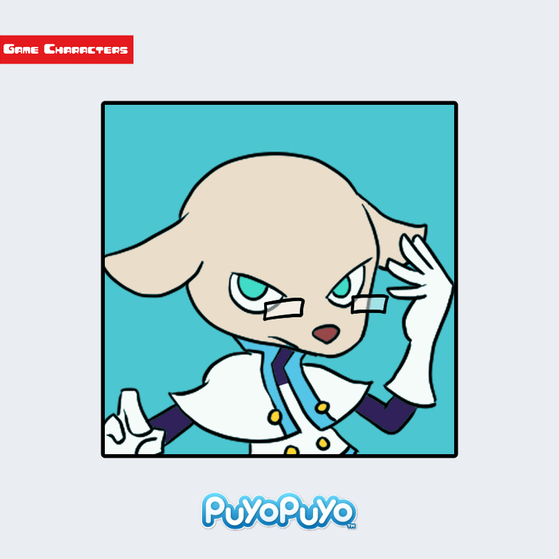 『ぷよぷよシリーズ』に登場するアイは、ベージュ色の肌を持つ人物型キャラクターである。髪は短く整えられ、前方に流れるシルエットを形成しており、左右にわずかに広がる耳のような造形が特徴的。衣装は白と青を基調としたコート風のデザインで、首元には濃い青の襟と金色のボタンが施されている。手には白い手袋を着用し、眼鏡をかけた理知的な外観を持つ。全体として「制服融合型科学服構造」に分類される。