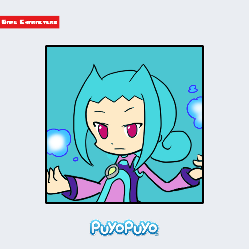 『ぷよぷよシリーズ』に登場するラフィソルは、水色の長髪を持つ人物型キャラクターである。髪は後方に向かって大きく流れ、両側に束ねられたリボン状の部分が特徴的。衣装は紫と黒を基調に、胸元と袖口に装飾的なカットラインが入ったボディスーツ風構造となっている。両手には青白い光のエフェクトを思わせる球体装飾が浮かび、全体的に非人間的な神秘性を持つ意匠である。「魔導融合型超越構造」に分類され、同シリーズ内でも高位存在を象徴するデザインラインに属する。