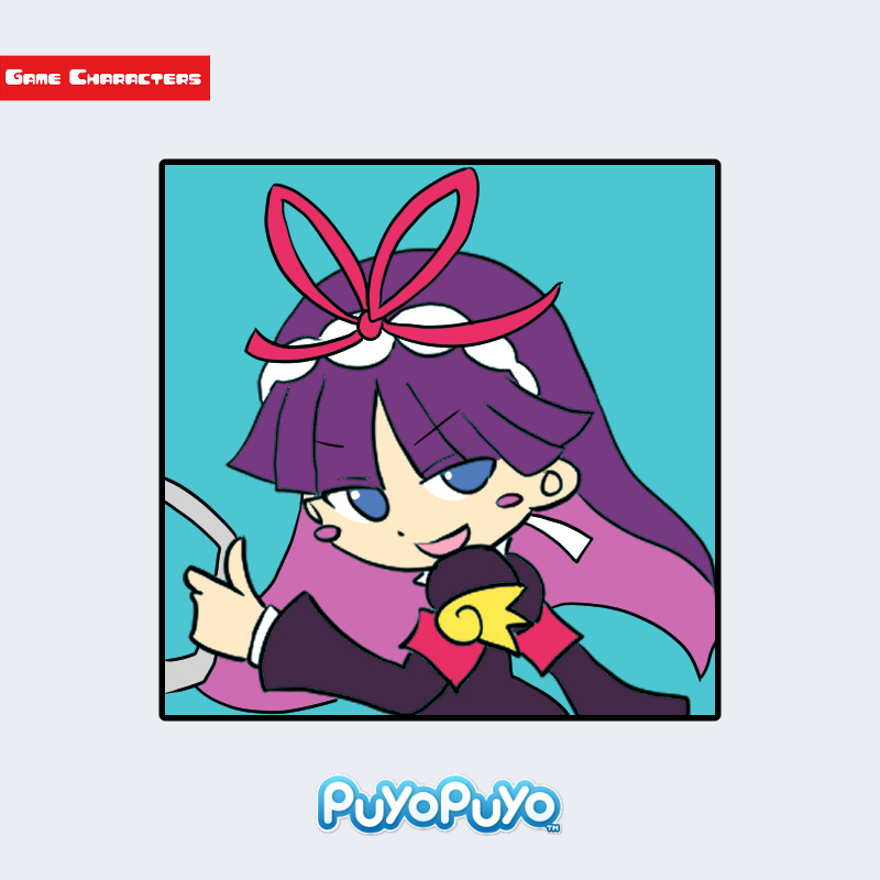 『ぷよぷよシリーズ』に登場するフェーリは、紫色の長髪を持ち、頭頂部に赤いリボン状の装飾を結んだ人物型キャラクターである。髪は肩下まで伸び、後方にかけて自然に流れる構造をしている。衣装は赤紫と白を基調とし、胸元に黄色のリボン風パーツが付属している。袖口には白いカフスがあり、裾には濃色の縁取りが施されている。全体として魔導学校制服をモチーフにした「制服融合型魔導構造」に分類される。