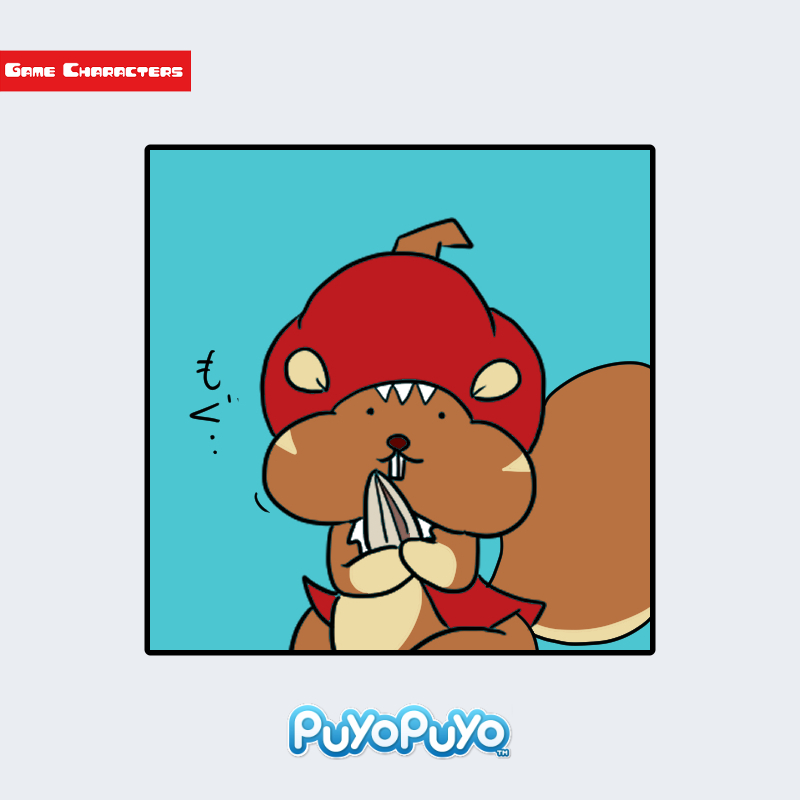 『ぷよぷよシリーズ』に登場するパプリスは、リスをモチーフにした擬獣化キャラクターである。全身は茶色を基調とし、頭部には赤いフードのような装飾を被っている。目は丸く、頬に白い模様があり、口元には常に何かを咥えている描写が特徴的である。手には白い木の実のようなものを持ち、口を動かす仕草がデザインの一部となっている。全体の造形は小動物的で、「擬リス構造」に分類される。構造的には自然要素とデフォルメされた動物意匠が融合した形態である。