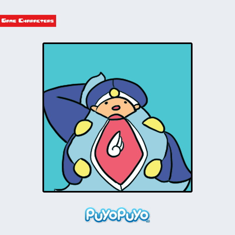 『ぷよぷよシリーズ』に登場するタルタルは、丸みを帯びた体型と、青を基調とした衣装を身にまとうキャラクターである。頭部には円形の帽子状パーツがあり、額の中央に白い球状の装飾が付けられている。衣装の前面には大きな赤い菱形パネルがあり、その中央には白い羽根のような紋章が描かれている。腕と手の部分には金色のパーツが確認でき、全体として防護服と儀礼装束の中間的な構造を持つ。「儀礼防護融合型」に分類され、丸みと幾何学の融合が特徴的である。