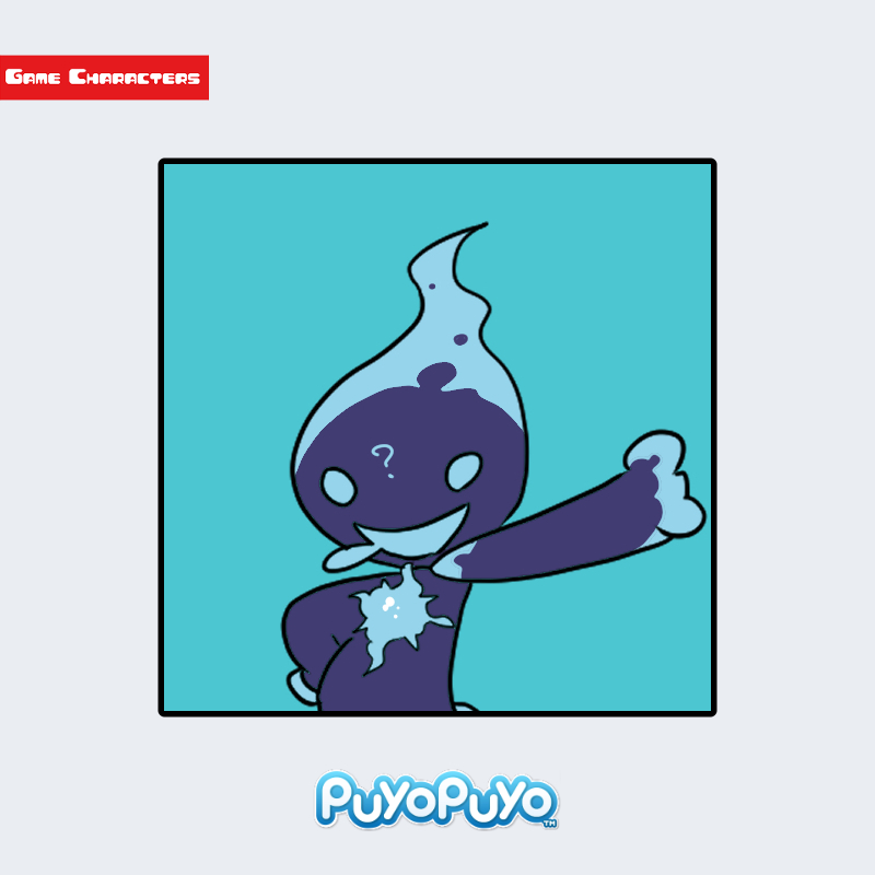 『ぷよぷよシリーズ』に登場するエコロは、流体のような体表を持つ紫と水色のグラデーションで構成されたキャラクターである。髪や衣装の境界は存在せず、全身が一体化したような有機的フォルムを形成している。頭頂部は炎のように尖った形状で、顔の中央には「?」のマークが描かれている。胸部には星型の透過部があり、内部が発光しているようなデザイン処理がなされている。人間的な骨格を持ちながらも衣服を持たないため、「擬流体構造」に分類される。