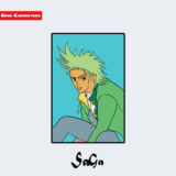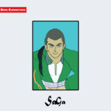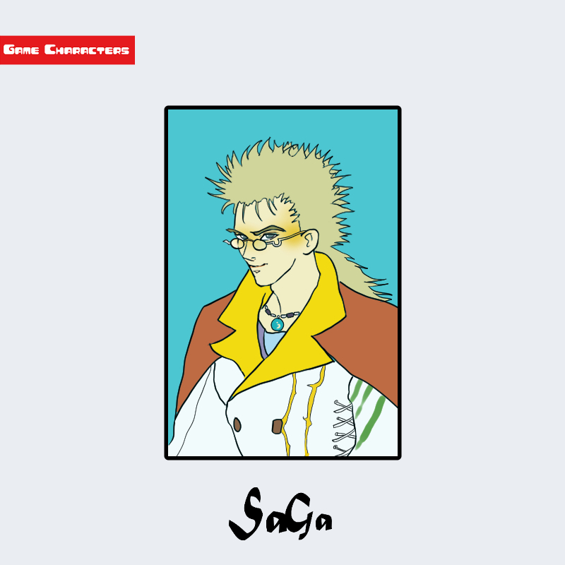 『ロマンシング サ・ガ3』に登場するトーマス・ベントは、淡い金髪を後方に流した立体的な髪型が特徴の男性キャラクターである。上半身は白いコートを基調とし、内側に黄色の襟を持つ緑色のベストを重ねた多層構造の衣装を着用している。肩から背中にかけて赤茶色のマントを羽織り、胸元には装飾的な留め具が確認できる。全体として機能性と装飾性を併せ持つ服飾構造となっており、構造分類としては「多層服飾型」に属する。