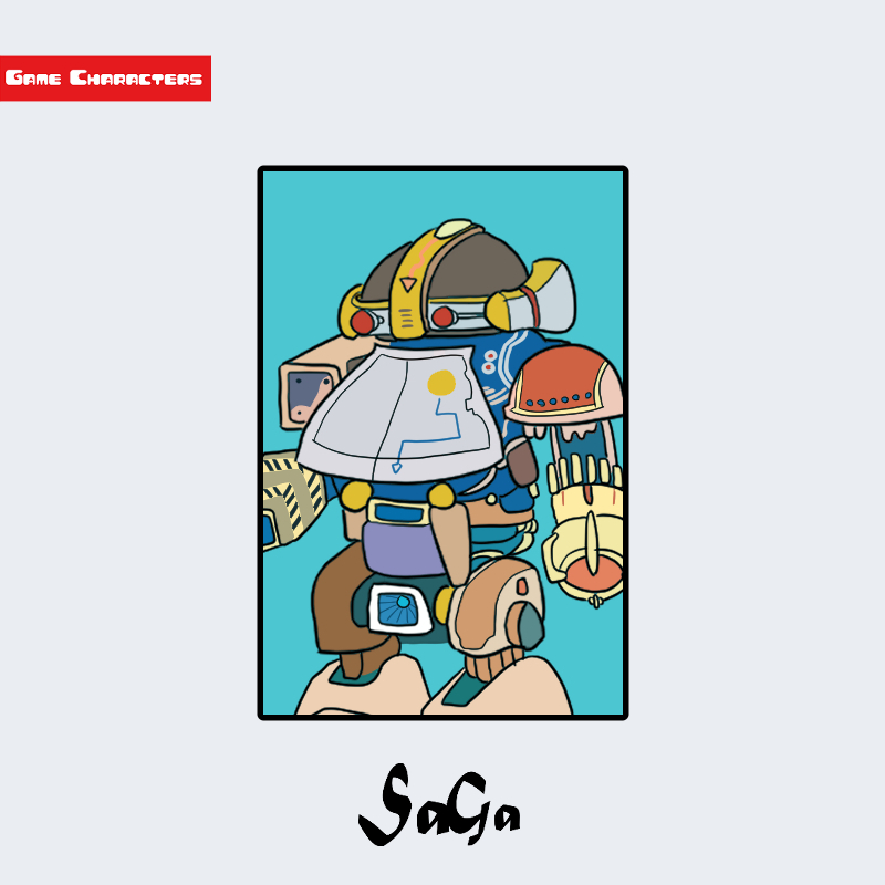 『サガ フロンティア』に登場するT260Gは、全身を多関節のメカニカルパーツで構成したロボット型キャラクター。頭部にはセンサー兼通信機能を想起させる円形パーツを備え、胸部は透明な装甲プレートによって内部構造が部分的に見える設計となっている。腕部・脚部にはそれぞれ異なる装甲モジュールが取り付けられ、機能差を示す配色が施されている。全体のデザインは実戦用機体と作業機構を融合させた多層構造であり、関節や駆動部が露出している点が特徴的。構造分類としては「機械生命体型」に属する。