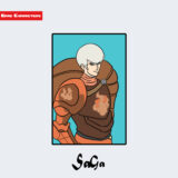 『サガ フロンティア2』に登場するギュスターヴ13世は、長い金髪を後方へ流した堂々とした外見を持つ男性キャラクター。上半身は金属製の胸甲を中心に、左右非対称の肩当てを組み合わせた重装構造。特に右肩には装飾性の高い金属パーツが配置され、左側には赤系の布地を交差させたデザインが見られる。鎧の下層には白と灰色の布地を重ね、重厚さと機動性を両立させている。全体構成は王族的象徴と戦士的実用を融合させた構造であり、構造分類としては「重装王族型」に属する。