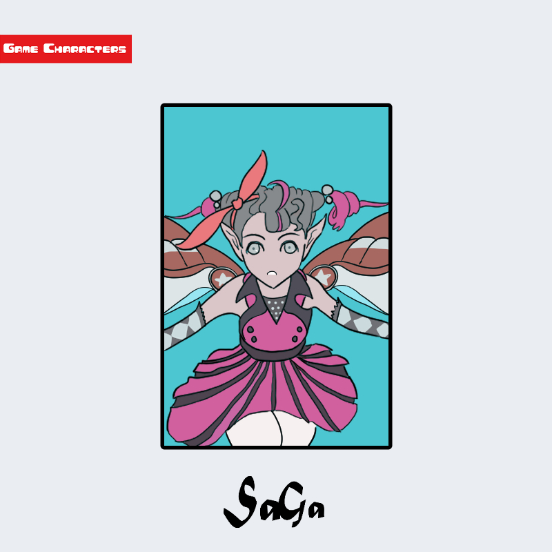 『ロマンシング サガ リ・ユニバース』に登場するようせいは、明るい色調の衣装と羽根状の装飾を特徴とする小柄なキャラクターである。髪は灰色を基調に複数のリボンで束ねられ、左右非対称のデザインが際立つ。背面には透明感のある羽根が広がり、上半身は軽装構造で、スカート部は花弁のように分割された層状構成をもつ。全体として「妖精擬人化型」として分類され、自然モチーフの造形が強調されている。