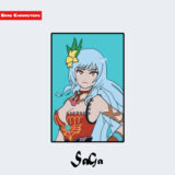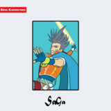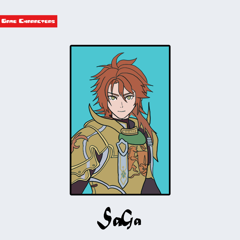 『ロマンシング サ・ガ2』に登場するジェラールは、赤茶色の髪を持ち、前髪を流しつつ後部を結わえた整った髪型が特徴の男性キャラクターである。衣装は金色を主体とした鎧を身にまとい、肩部には獅子を思わせる彫刻的装飾が施されている。胸元には青色を基調とした装飾があり、王族的な気品と武人の要素を兼ね備えた意匠となっている。鎧の細部は曲線的な文様が強調され、戦士というよりも王位を意識させる構造的デザインで、「王族武装型」の分類に位置づけられる。