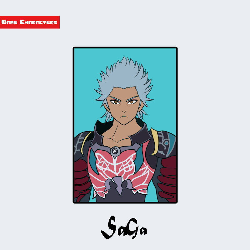 『ロマンシング サ・ガ2』に登場するノエルは、銀灰色の逆立った髪型と鋭い目元が特徴の男性キャラクターである。胸部には赤と白の幾何学的な装飾を持つ鎧を着用しており、中央に象徴的な紋様が描かれている。肩部には金属的なパーツが組み込まれ、全体的に重装甲を思わせるデザインでまとめられている。体格はがっしりとした印象で、鎧の構造と合わせて戦士的な存在感を強調している。同作に登場する他の七英雄と比較しても、鎧装飾の緻密さが際立ち、個別の役割を視覚的に示す「重装甲型」の構造分類に位置づけられる。