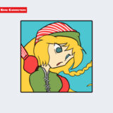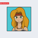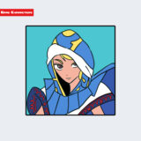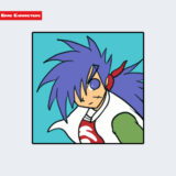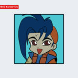 『ラストバイブル』シリーズに登場するルディは、短く整えられた濃い茶髪と大きく開いた表情が印象的な少年キャラクターである。青と白を基調とした衣装に赤いマフラーを合わせ、胸部には象徴的な紋章が描かれている。肩口から袖にかけてのデザインが冒険者風の軽装を示しており、動きやすさを重視した構造である。全体として、シリーズ内での標準的な「冒険者融合型」デザインの一例といえる。
