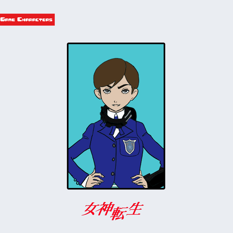 『真・女神転生 if…』に登場する主人公は、青いブレザーを基調とした学園制服を着用する男子学生として描かれている。短髪で整った髪型に、首元には黒いヘッドフォン状のアクセサリーを装備している。衣装構成はシンプルながらも、襟やネクタイの形状に直線的なデザインが見られる。別バージョンでは同構造の衣装を持つ女性型の造形が確認され、#制服融合型 の中で性別差を意図的に排除した設計となっている。